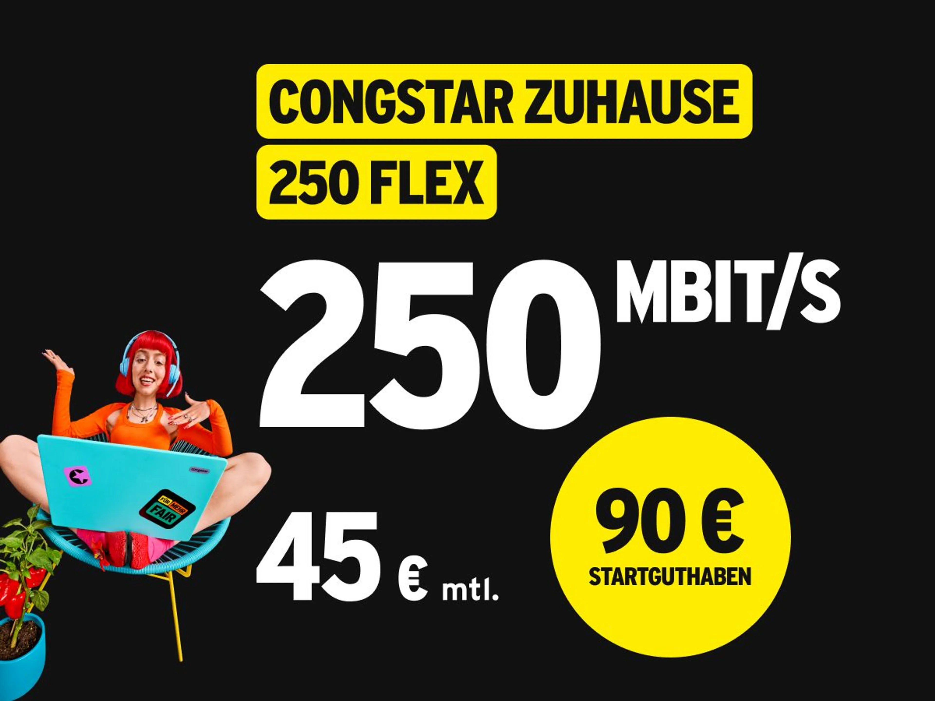 90 € Startbonus + 1,50 €/Monat Rabatt auf congstar Zuhause 250 Flex