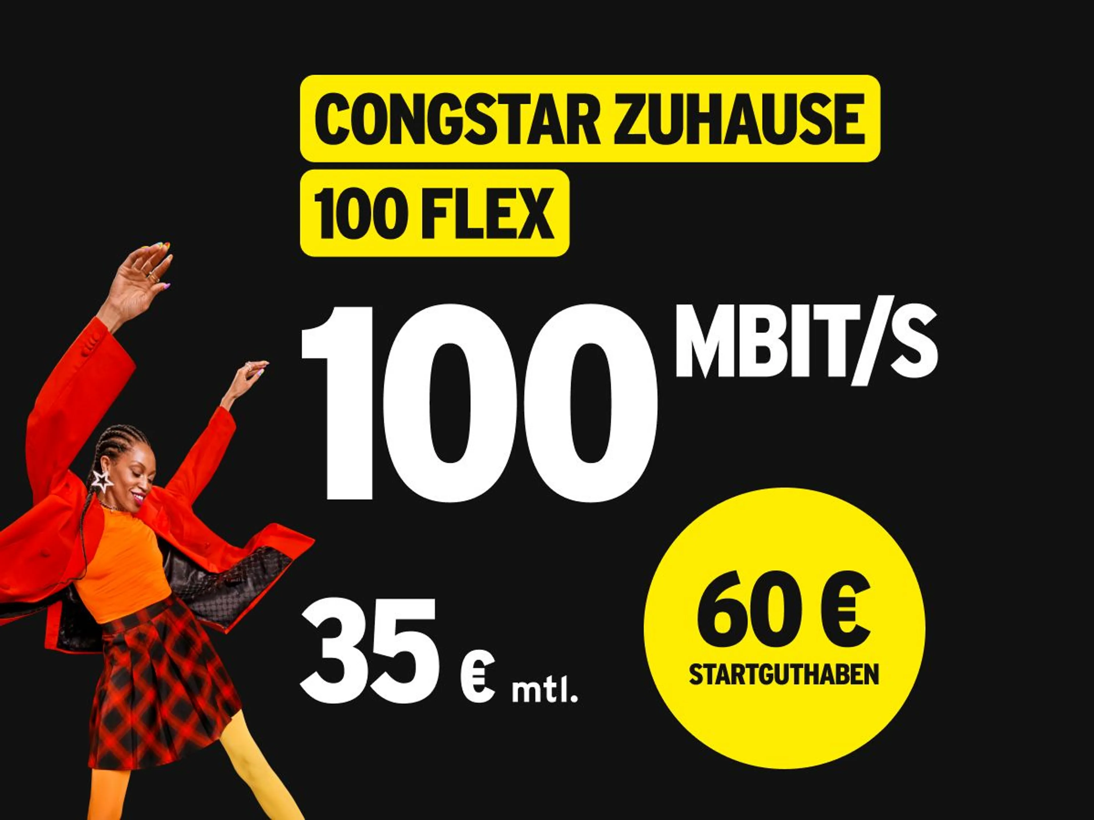 - 60 € Startbonus + 1,50 €/Monat Rabatt auf congstar Zuhause 100 Flex
