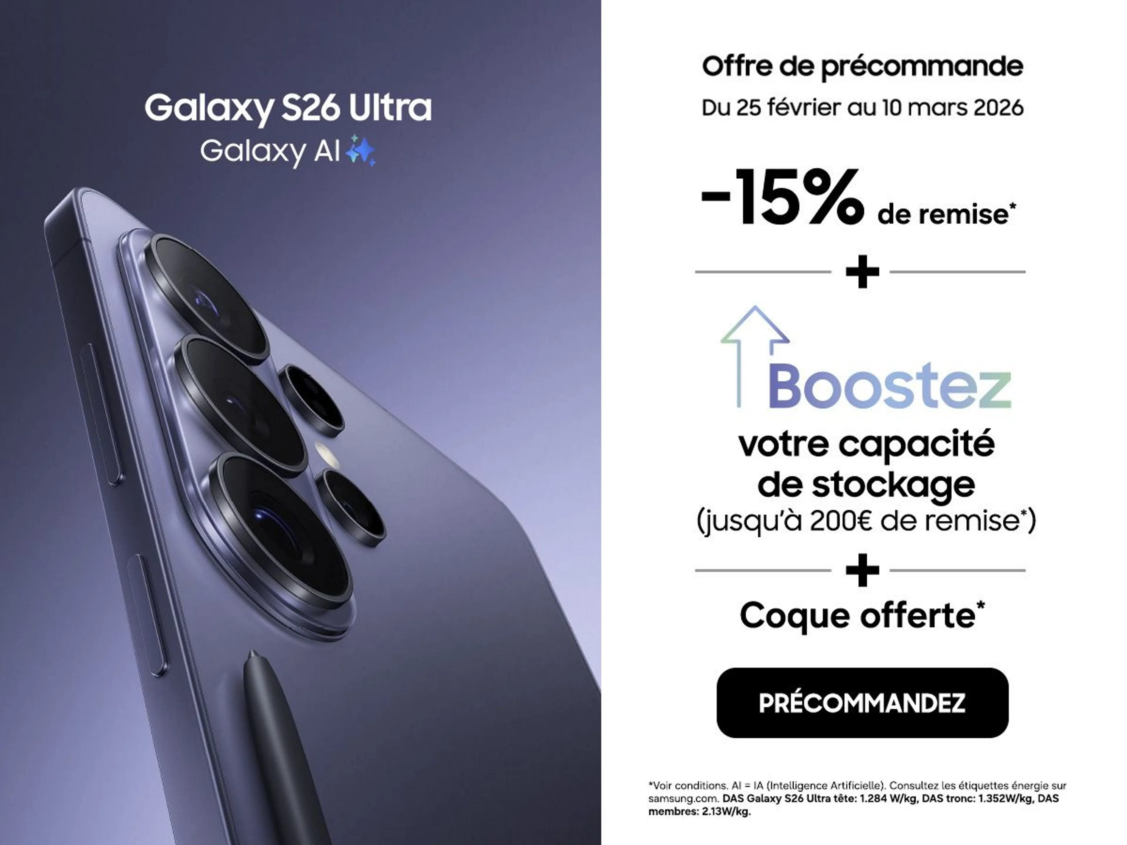 - NOUVEAU Galaxy S26 Ultra : -15% de remise* + coque offerte**🎁
