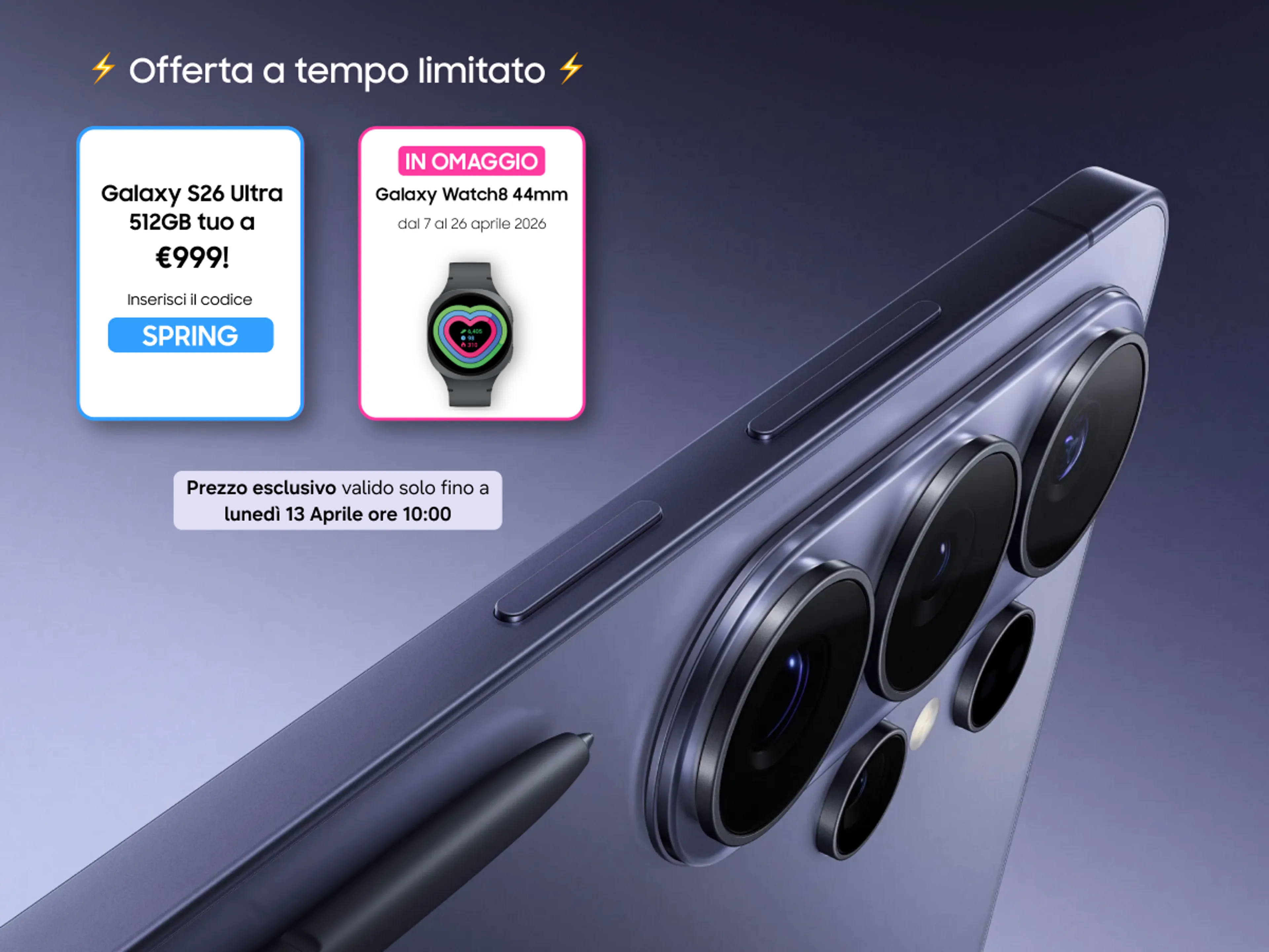 - Galaxy S26 Ultra 512GB tuo a €999! Solo fino al 13.04 ore 10:00